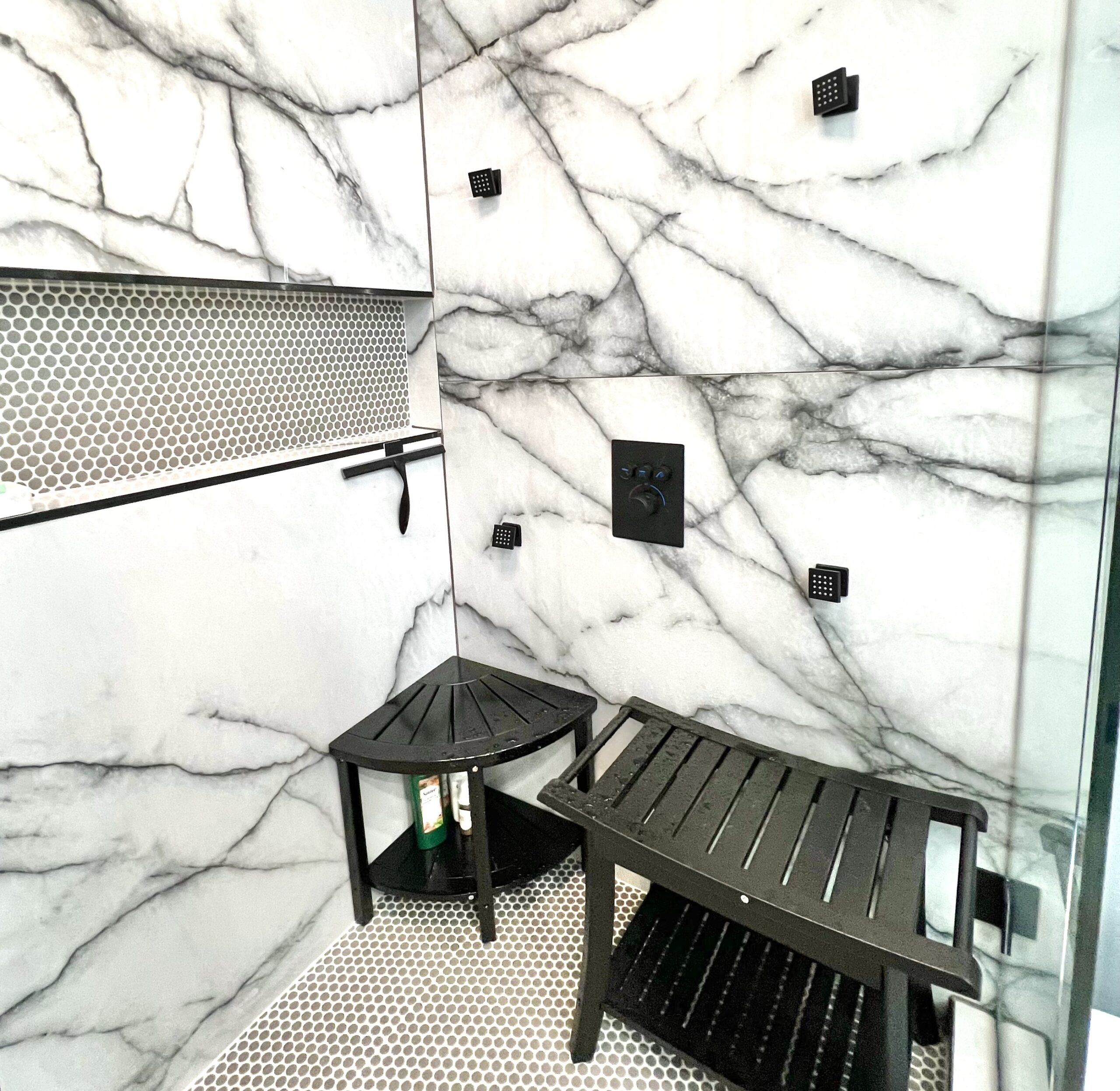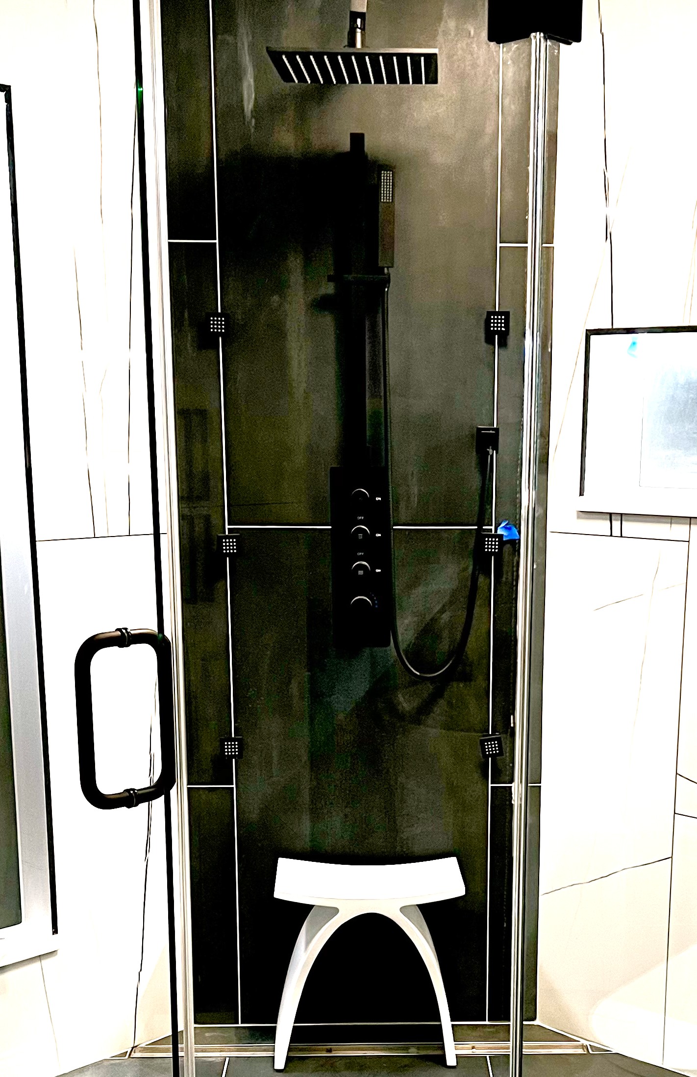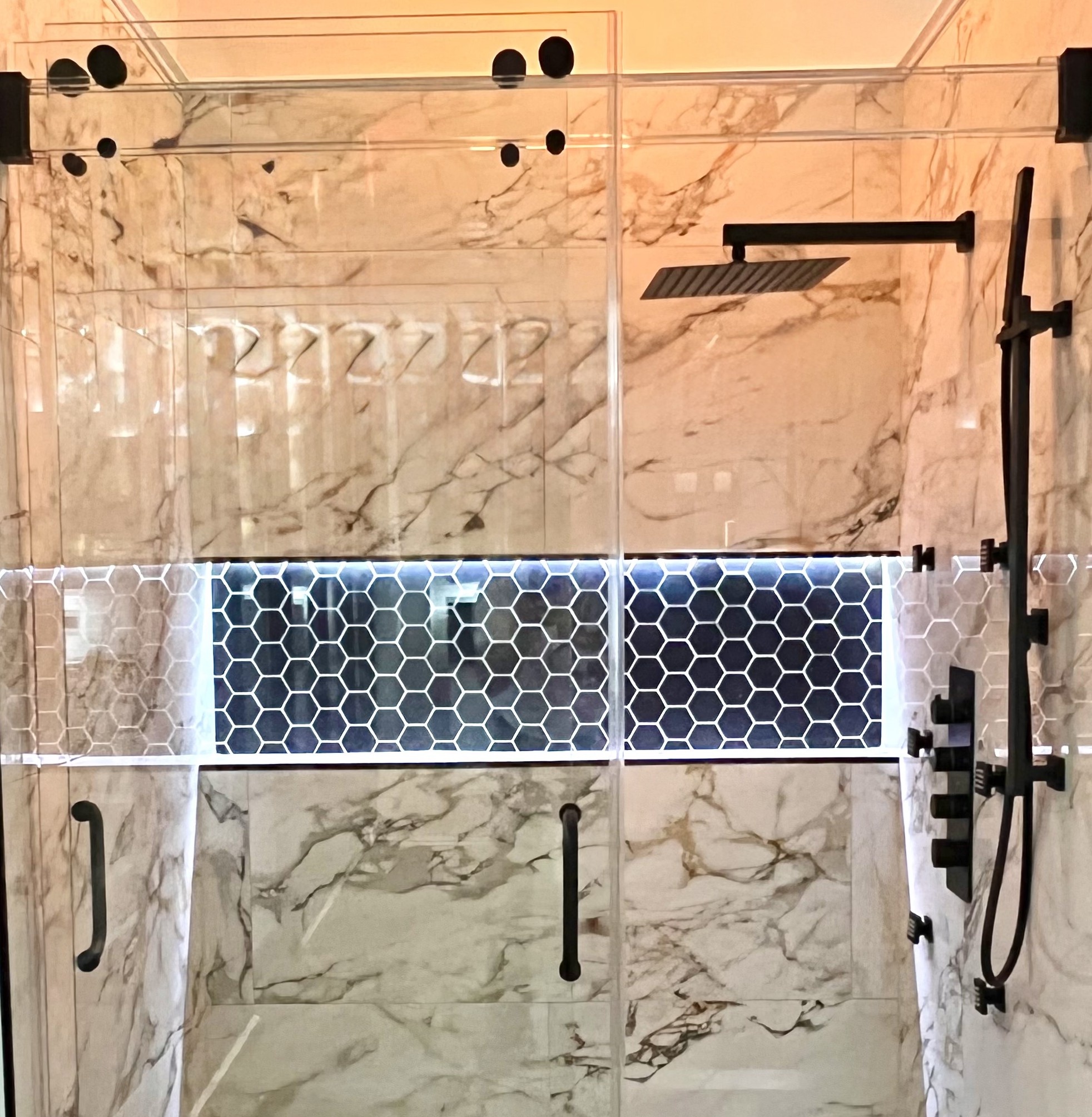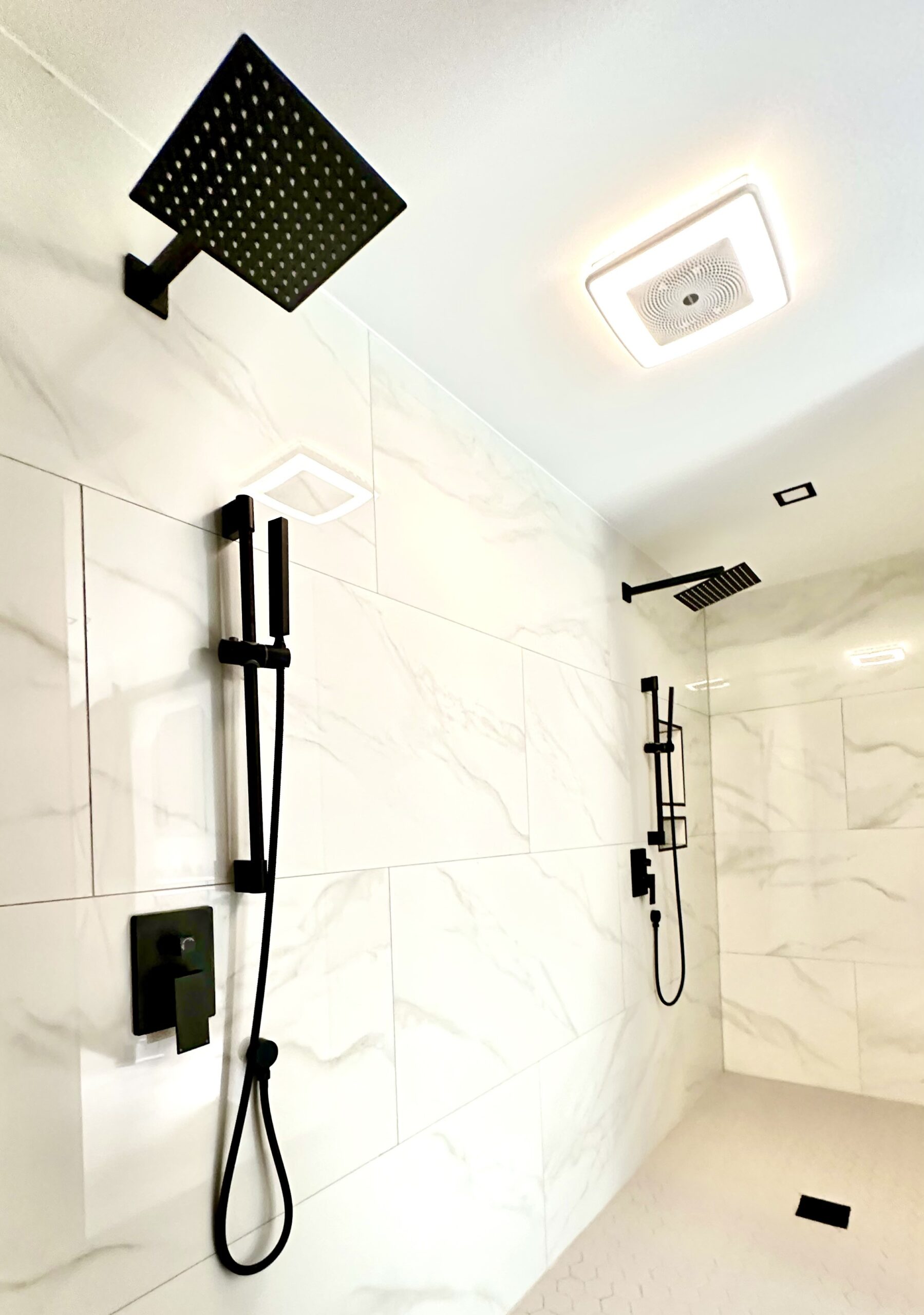 We don’t just swap finishes — we redesign layout, lighting, and the shower system experience.